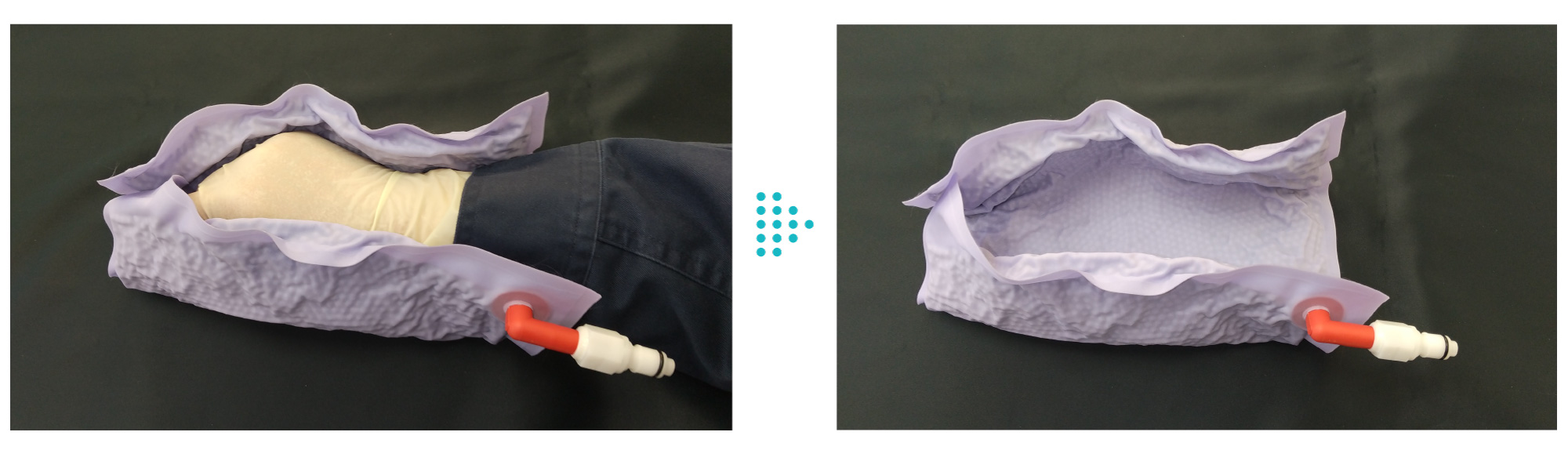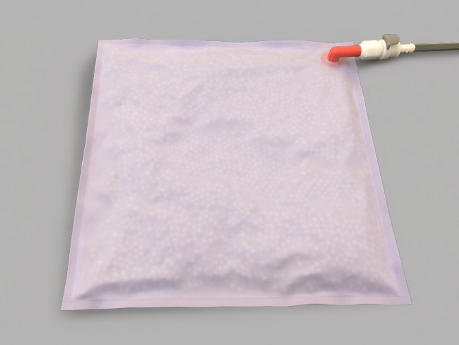 中性子遮蔽材(セラミックス)粒子や水素含有樹脂粒子を単独または混合し、専用バッグに封入した中性子遮蔽治具です。不定形な隙間にも柔軟に対応でき、照射口と患者様との間などに設置することで、漏洩する中性子を効果的に遮蔽します。さらに、バッグ内部を脱気・真空化することで形状の調整や固定が容易に行え、使用環境に応じた最適なフィッティングが可能です。再度通気することで元の状態に戻すことができ、繰り返し使用・再成形にも対応します。