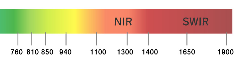 弊社では、近赤外(NIR)領域と短波赤外(SWIR)領域にていくつかのラインナップを準備しています。