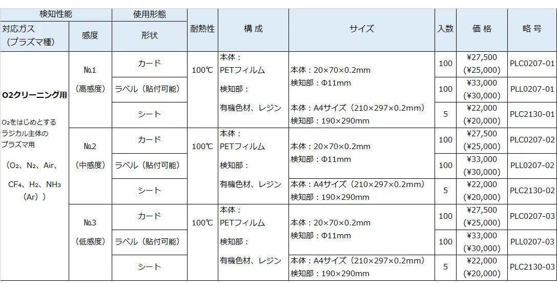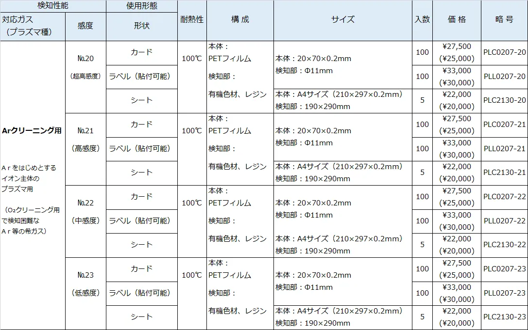 O₂クリーニングでは検知しにくいイオン性のArプラズマを効率よく検知できるインジケータです。